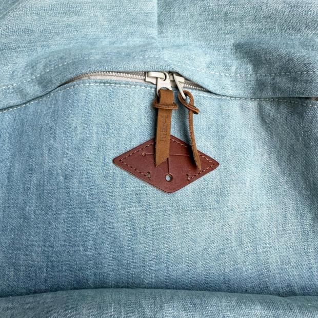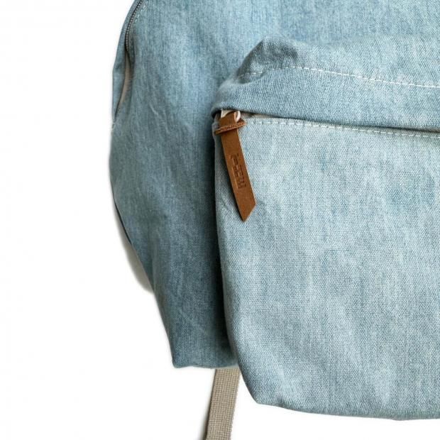 ONIGIRI BAGというネーニングからもわかるように三角おにぎりのような型が特徴的なDAYPACKです。 少し大きめのサイズが背負ったときに、絶妙のバランスをつくってくれます。 今回はデニムを使用。